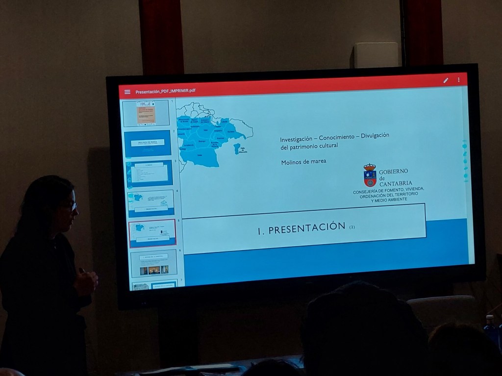 El jueves 7 de noviembre de 2024, presentamos algunos de los resultados del proyecto en una charla enmarcada en la actividad de divulgación europea de este Grupo de Acción Local, y en concreto de la dedicada al patrimonio de la comarca Asón-Agüera-Trasmiera y su contextualización en la UE, que realizamos desde el Punto de Información de Proyectos Europeos, con la financiación de la D. G. Fondos Europeos de la Consejería de Economía, Hacienda, Financiación Autonómica y Fondos Europeos, en una acción transversal con la Consejería de Fomento, Vivienda, Ordenación del Territorio y Medio Ambiente. La doctora en Historia del Arte Sara del Hoyo Maza, autora del estudio, presentó las líneas generales del trabajo que ha realizado para el GAL Asón-Agüera-Trasmiera en torno a los molinos de marea en los municipios pertenecientes a la entidad.